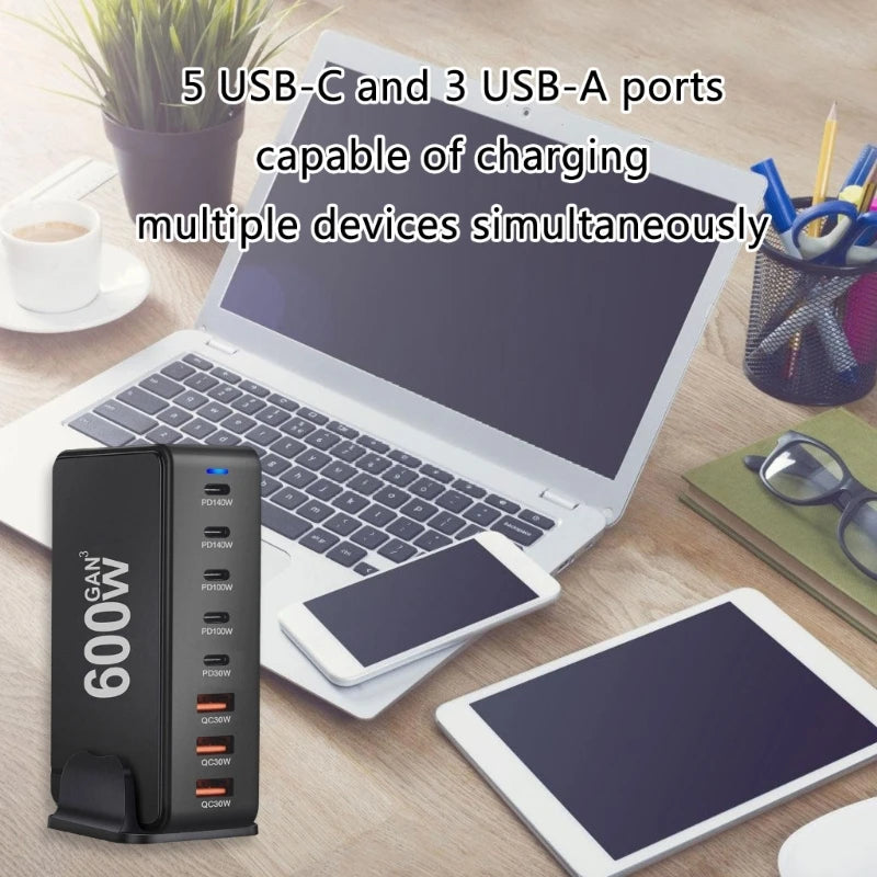 600W Stacja ładowania USB GaN do biura-Wieloportowa Stacja Zasilająca do Laptopów