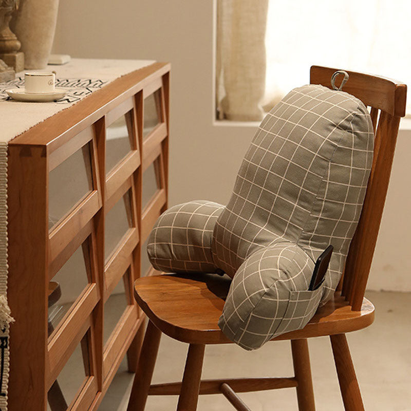Poduszka bawełniana z dodatkiem lnu. Pokrowiec wykonany z oddychającego materiału, miękki w dotyku. Wypełnienie z włókna 3D i pluszu zapewnia stabilne podparcie. Może być używana w biurze, gabinecie lub w przestrzeni domowej.