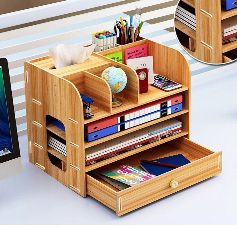 Biurkowy Regał Drewniany na Dokumenty i Akcesoria – Organizer do Domu i Biura