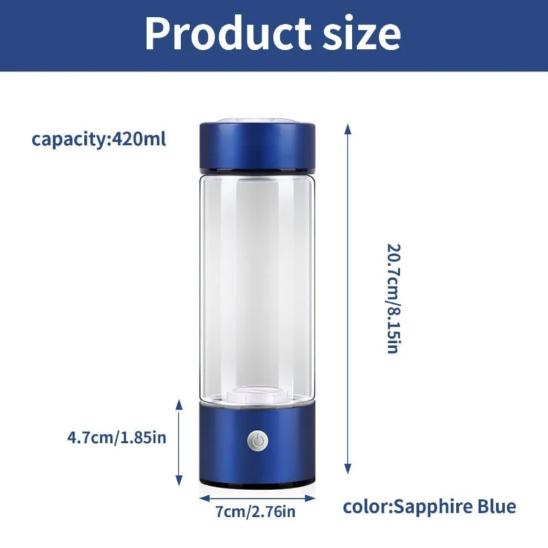 Przenośna butelka z generatorem wodoru i zasilaniem USB, stworzona do codziennego użytku. Dzięki zastosowanej technologii butelka umożliwia przygotowanie wody wzbogaconej wodorem. Jej kompaktowa konstrukcja sprawia, że sprawdza się w domu, biurze lub podczas podróży.