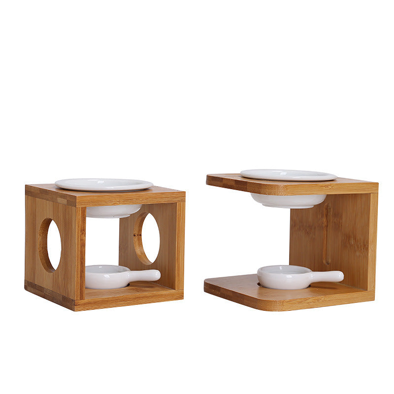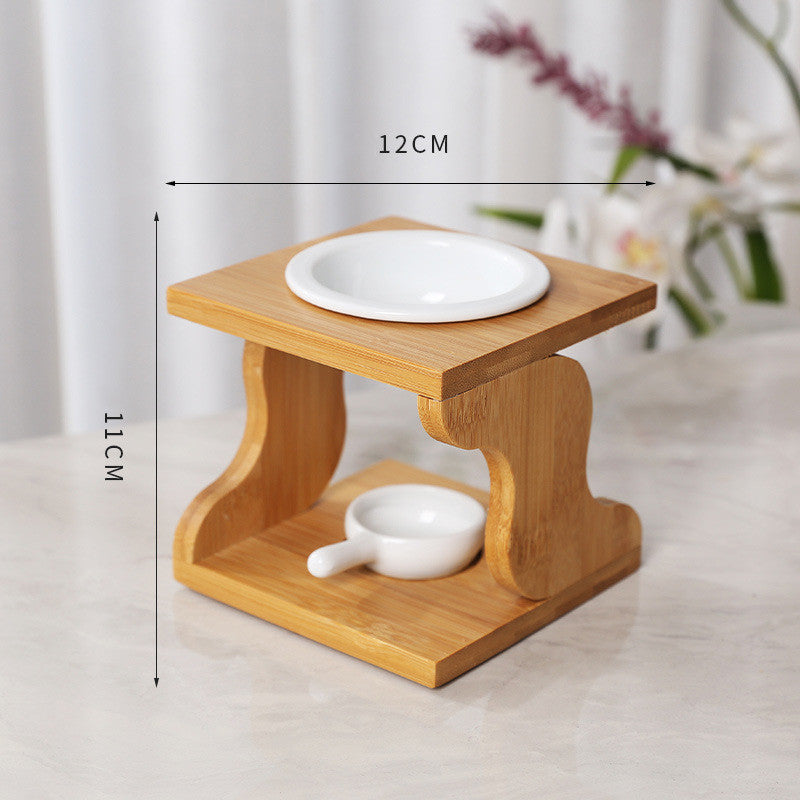 Ceramiczny Kominek Aromaterapeutyczny z Bambusową Podstawką – Zestaw do Olejków Eterycznych