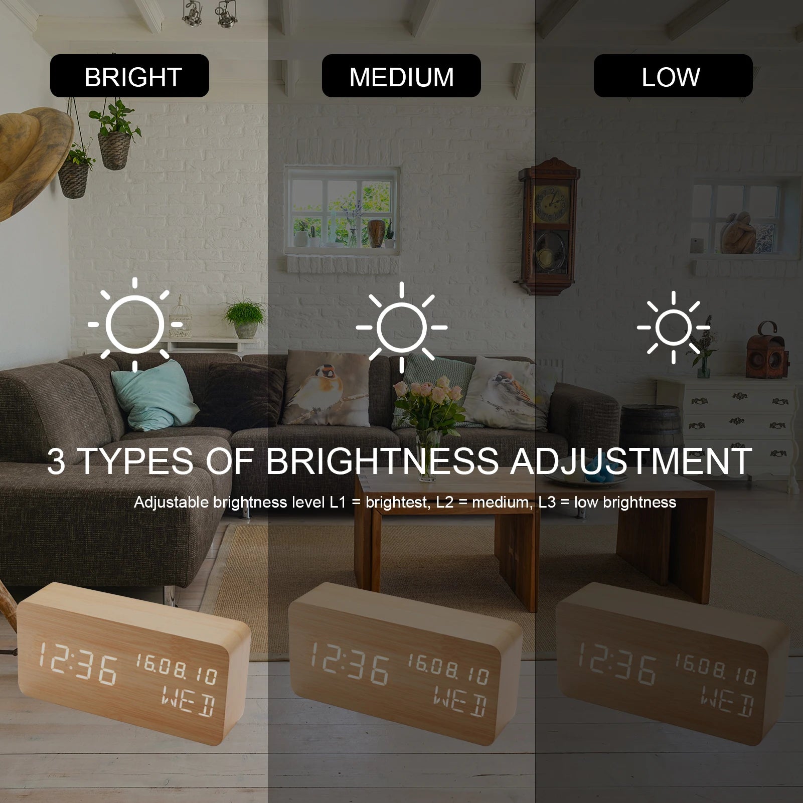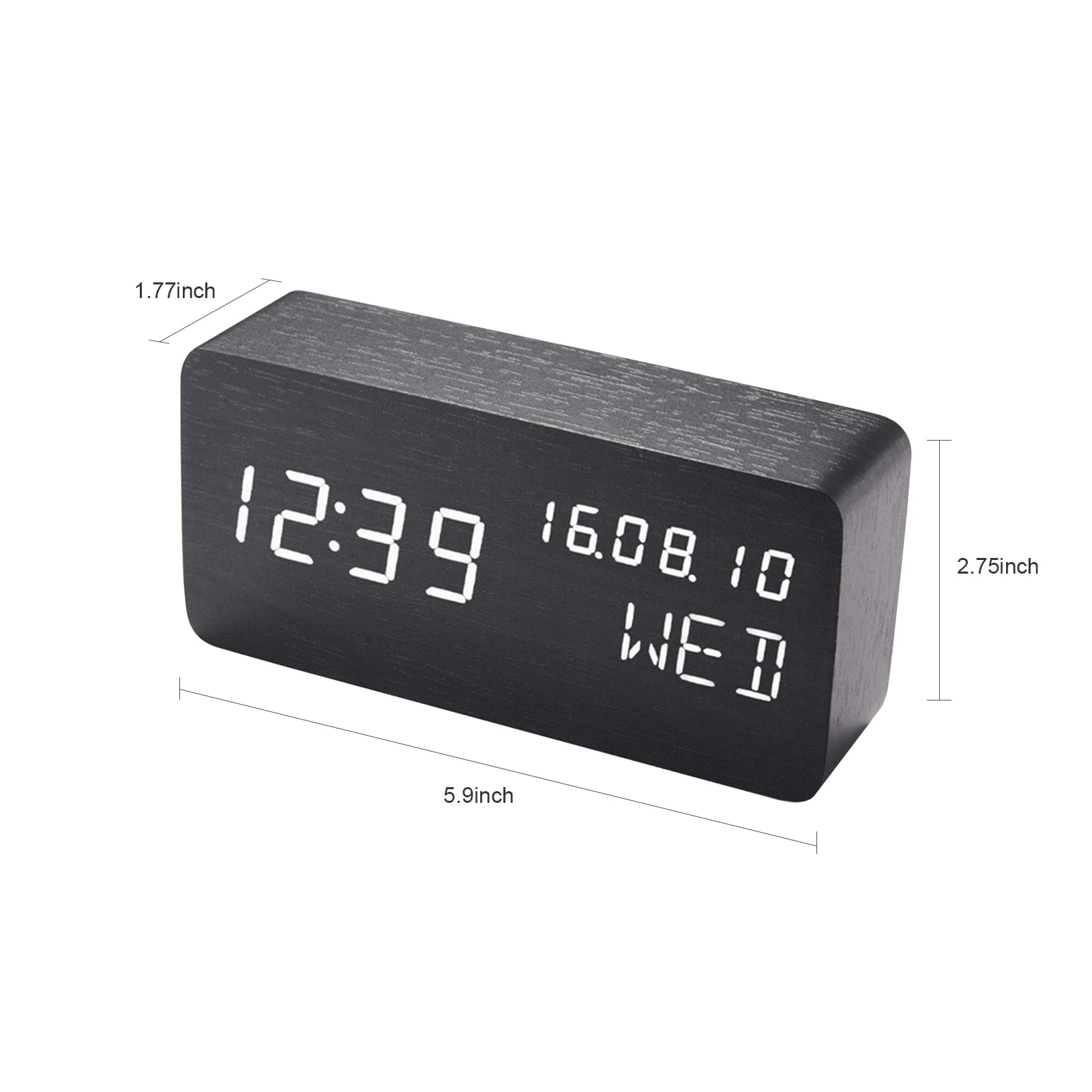 Drewniany Budzik LED z Kontrolą Głosu i Regulacją Jasności- Zegar na Biurko