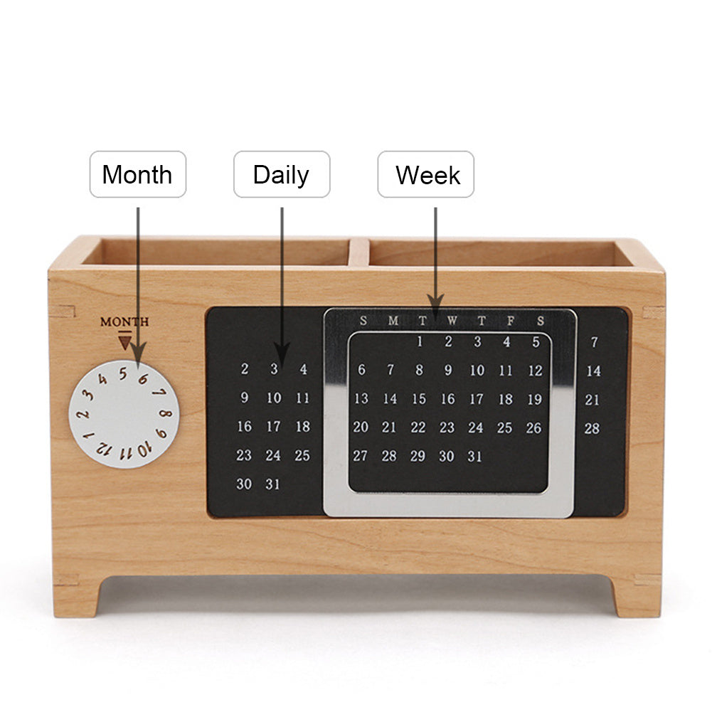 Drewniany Organizer na Długopisy z Kalendarzem LED
