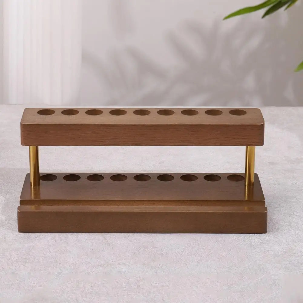Drewniany organizer na długopisy i telefon – minimalistyczny stojak na biurko z 9 przegródkami