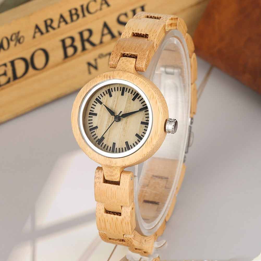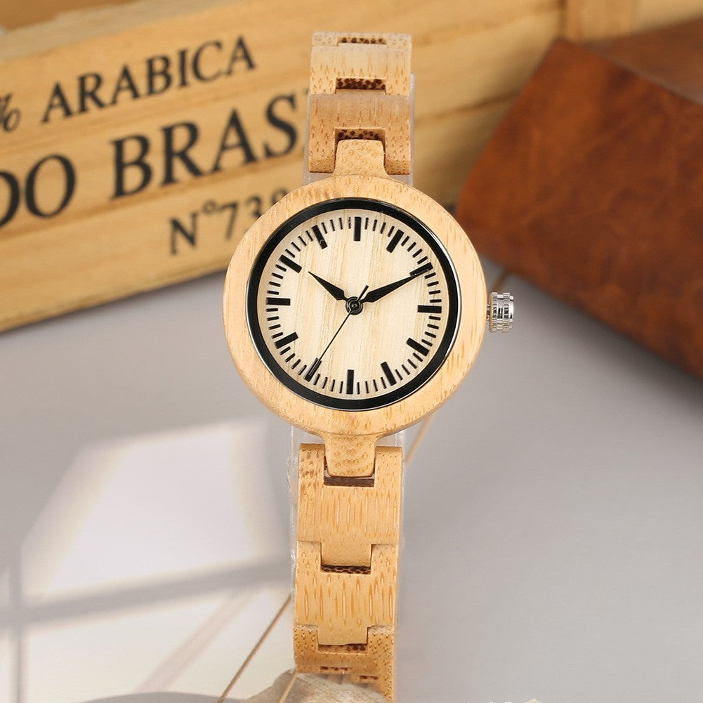 Drewniany zegarek z paskiem ze skóry naturalnej