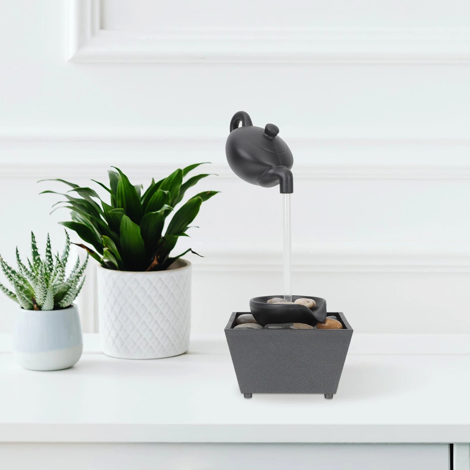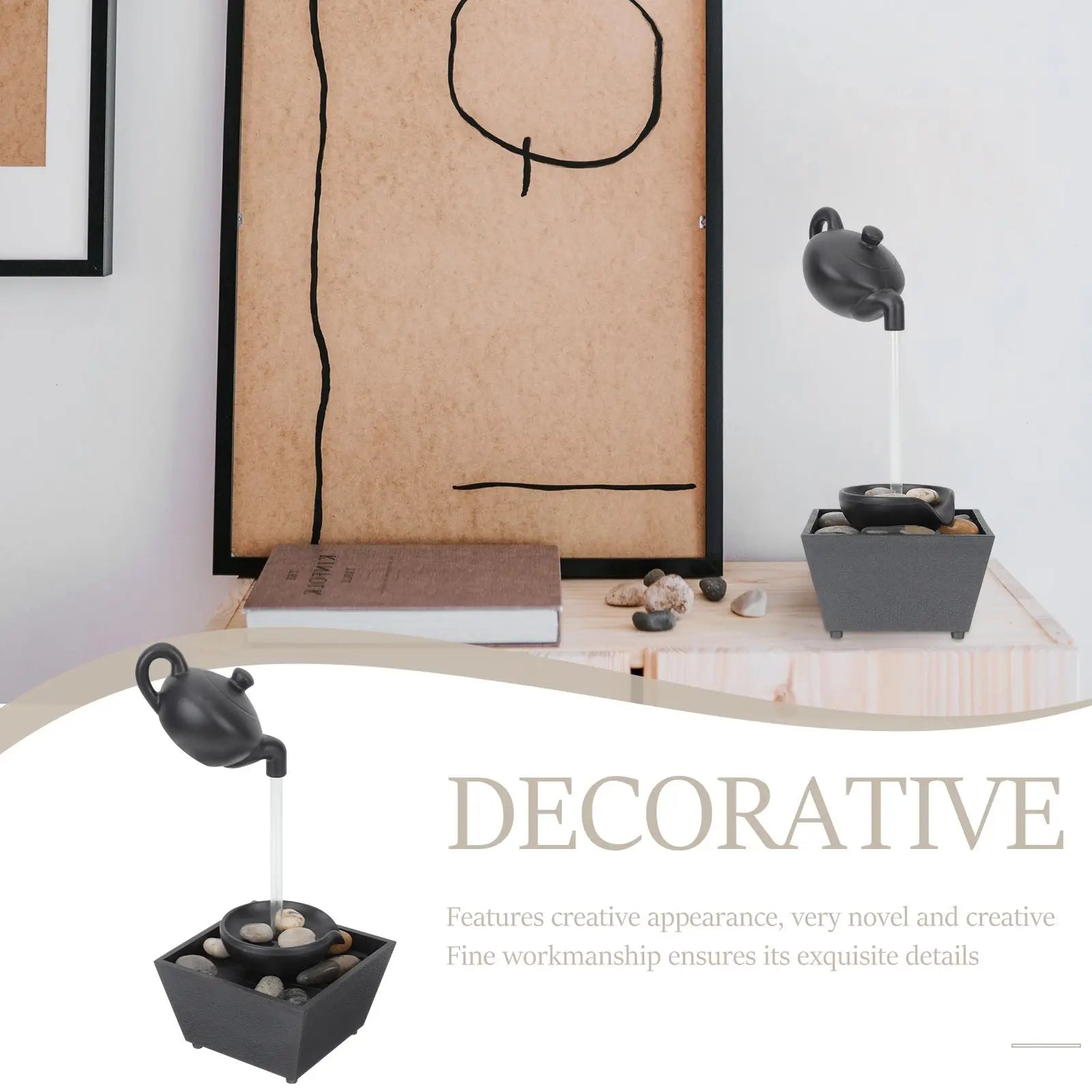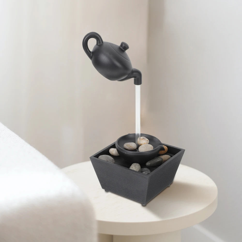 Kompaktowa fontanna dekoracyjna w stylu zen, zaprojektowana z myślą o nowoczesnych wnętrzach. Dzięki delikatnie spływającej wodzie i subtelnemu oświetleniu LED stanowi oryginalny akcent do biura, salonu lub sypialni. Konstrukcja z tworzywa sztucznego sprawia, że fontanna jest lekka i łatwa do przenoszenia.