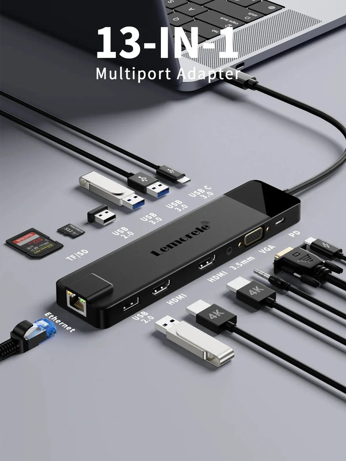 Stacja dokująca HUB USB-C 4K HDMI+VGA+RJ45+USB 3.0 +Czytnik kart