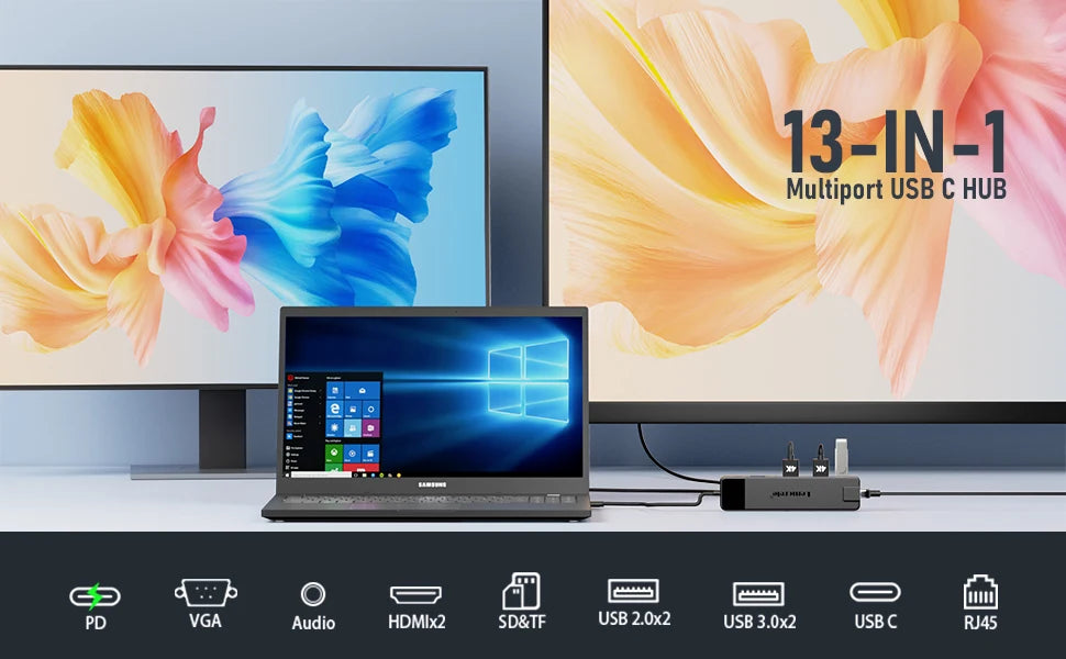 Zapewnij sobie pełną kontrolę nad przestrzenią roboczą i wygodne podłączenie wszystkich niezbędnych urządzeń. Idealna do laptopów, biura, pracy zdalnej i wielozadaniowości.