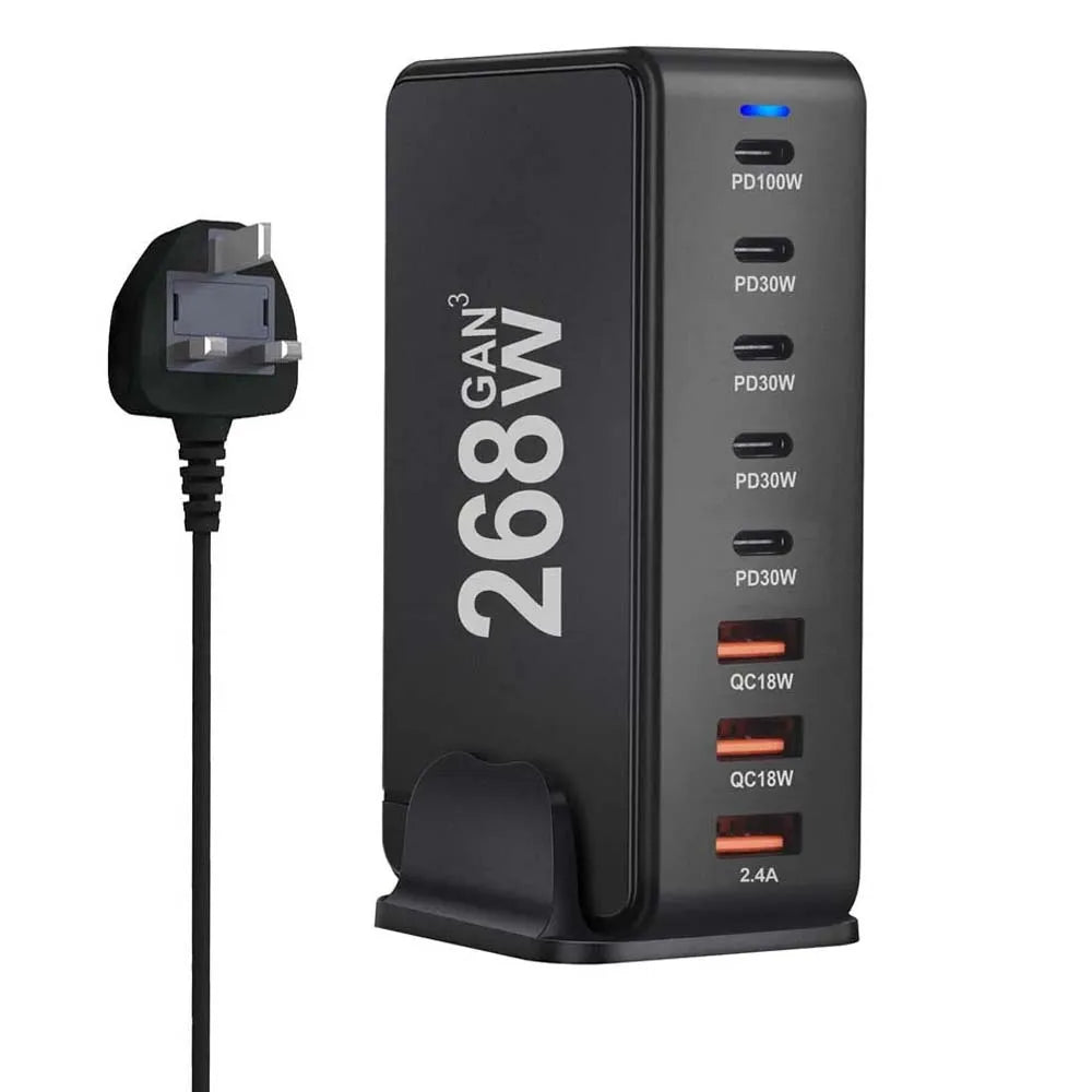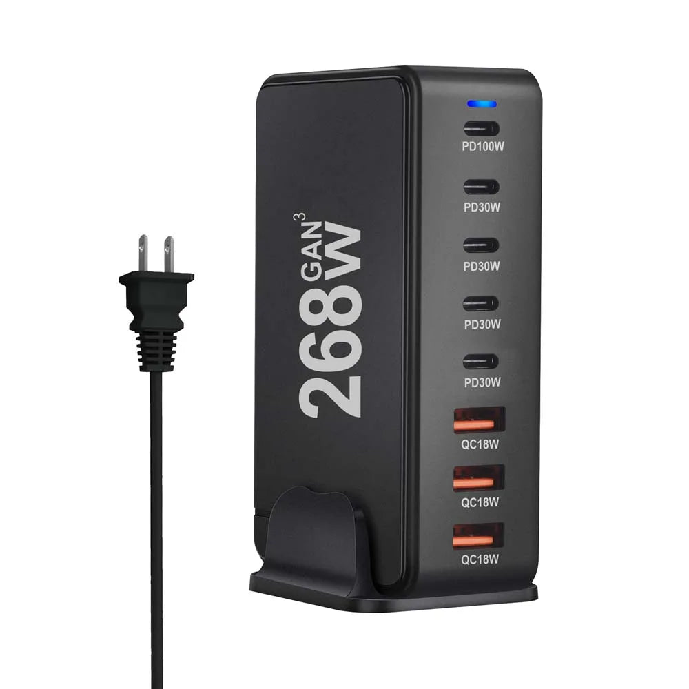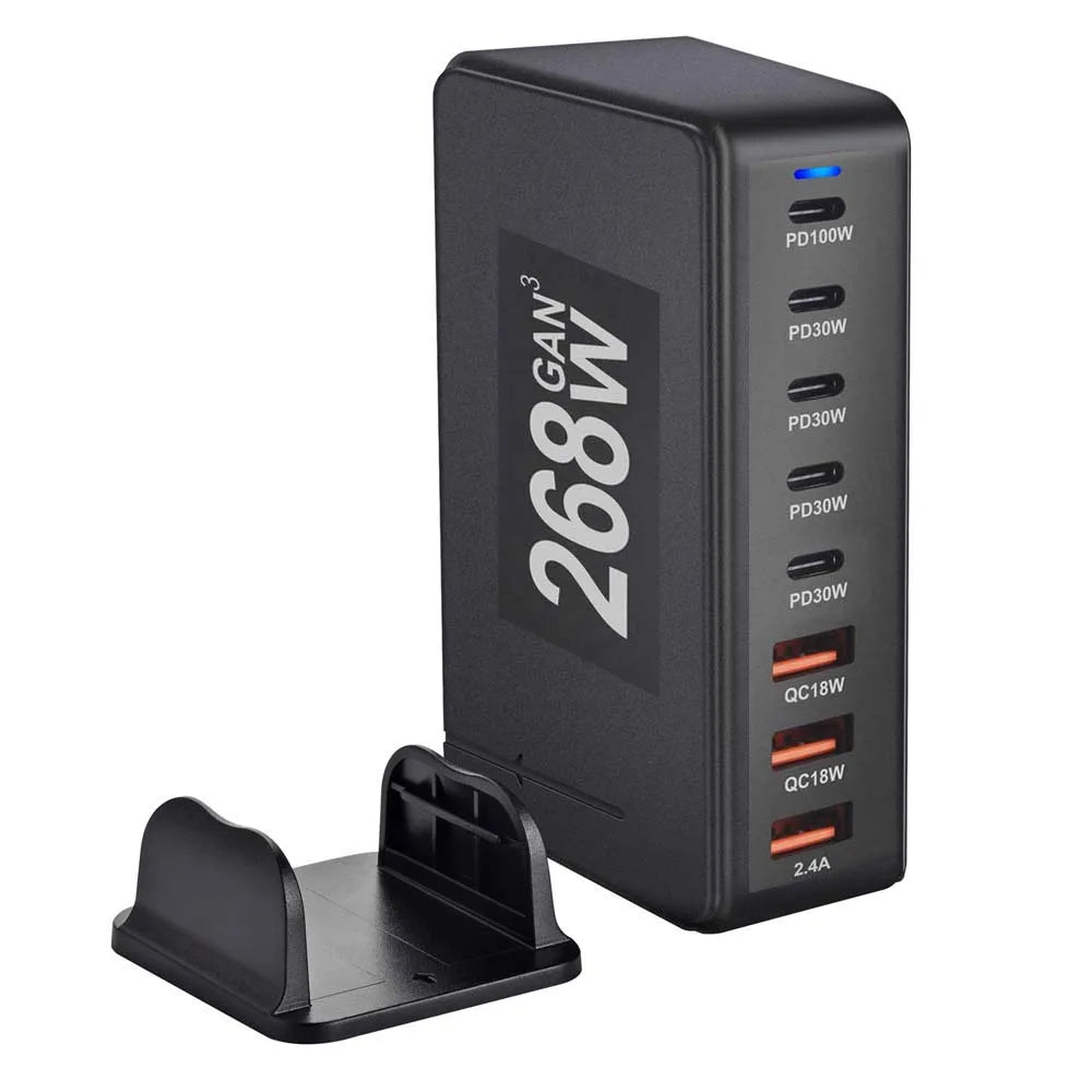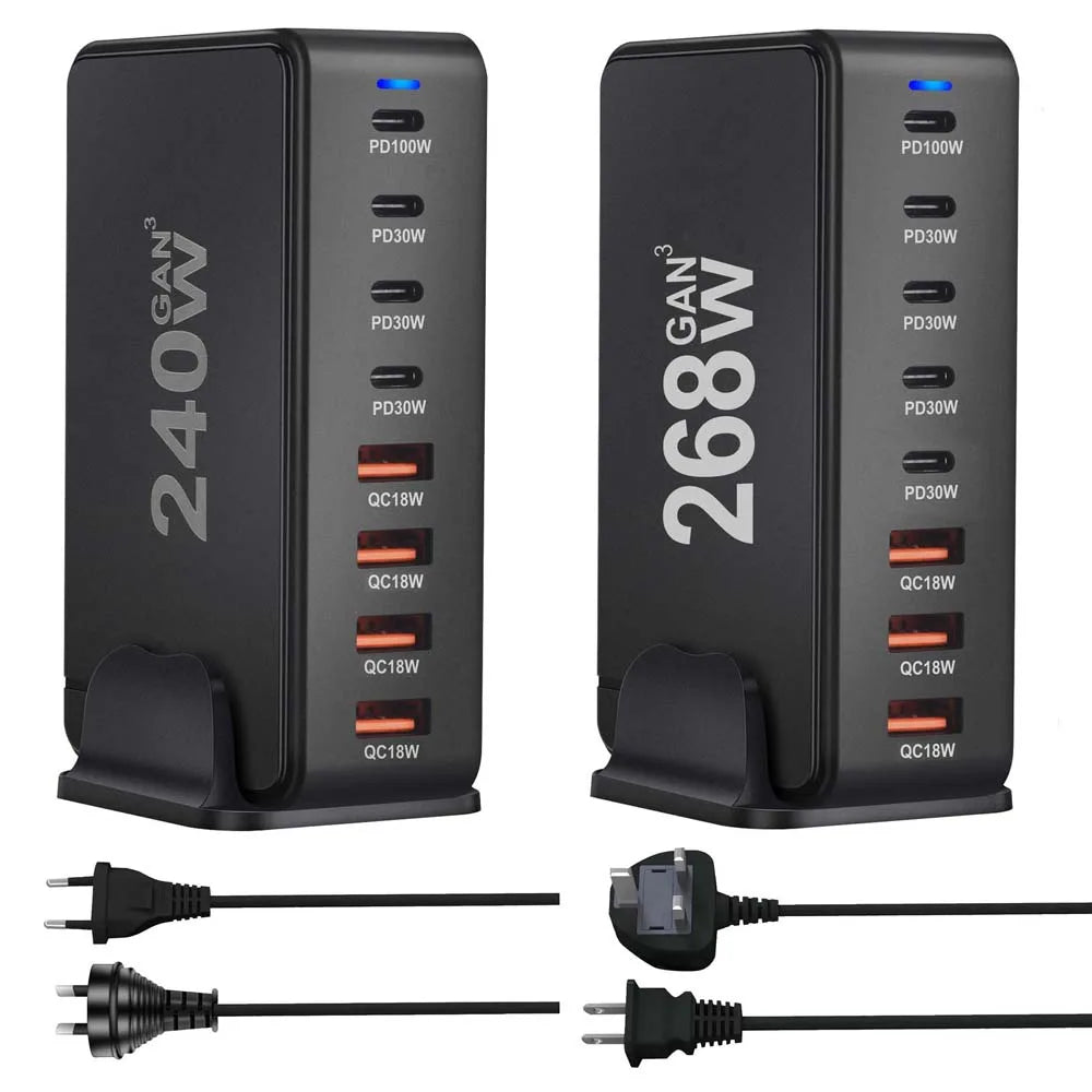 Ładowarka z technologią GaN o mocy 266W/240W to wygodne rozwiązanie do jednoczesnego ładowania laptopów, telefonów i innych urządzeń