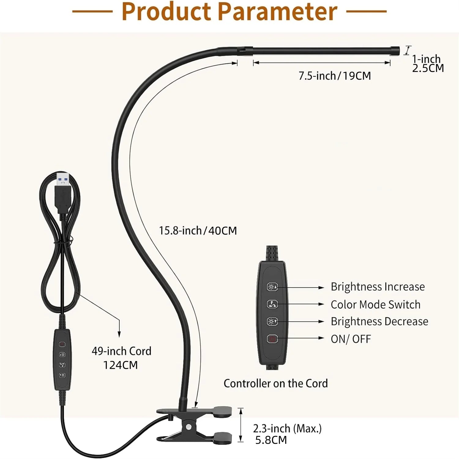 lampa LED do czytania z klipsem-ciepłe i zimne światło,ładowanie USB,elastyczne ramię.