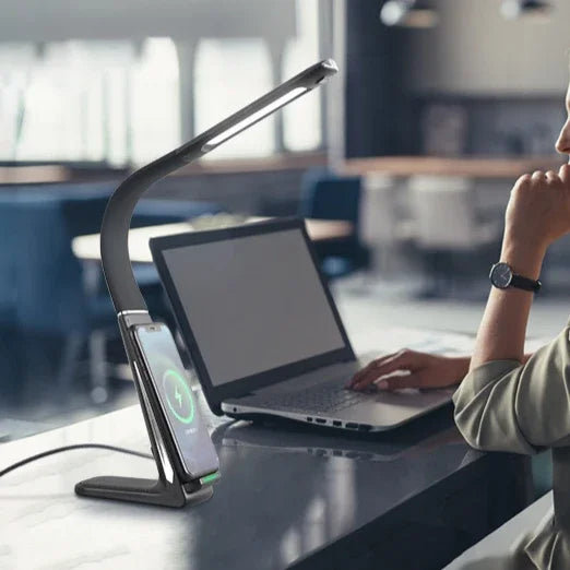 Nowoczesna minimalistyczna lampka biurkowa z ładowaniem bezprzewodowym USB 10W