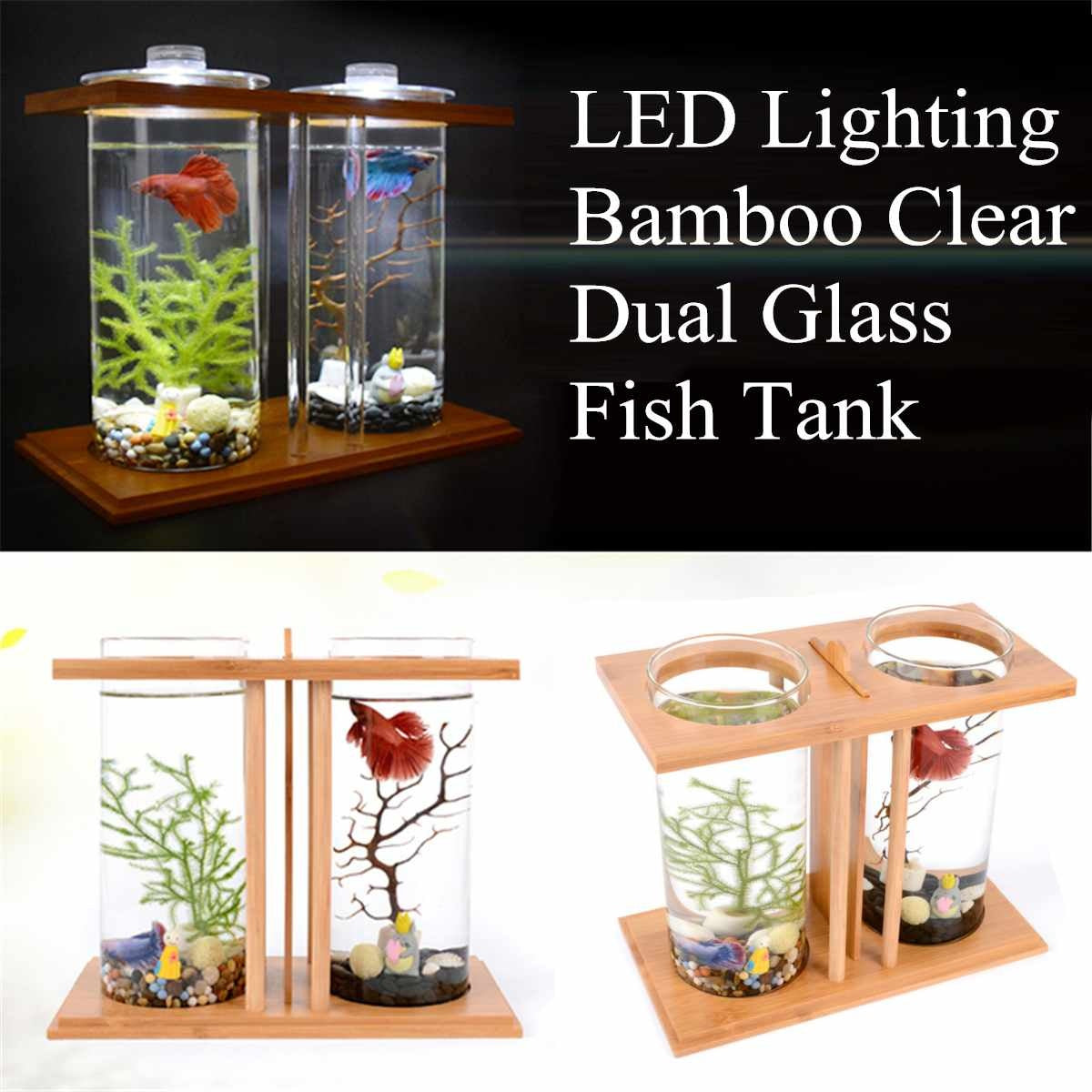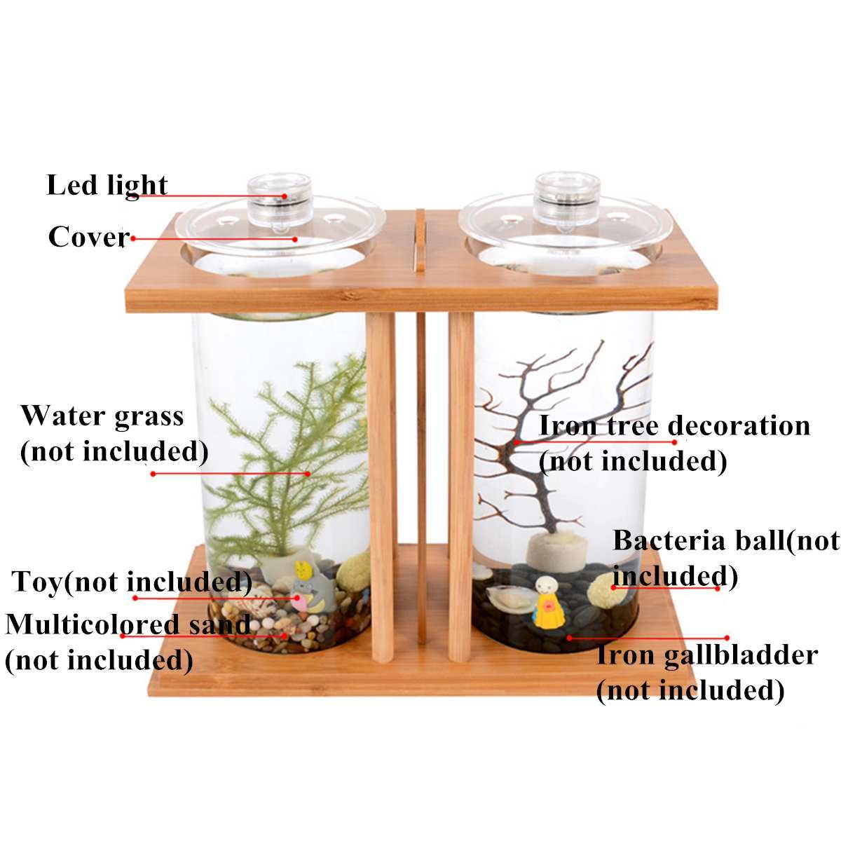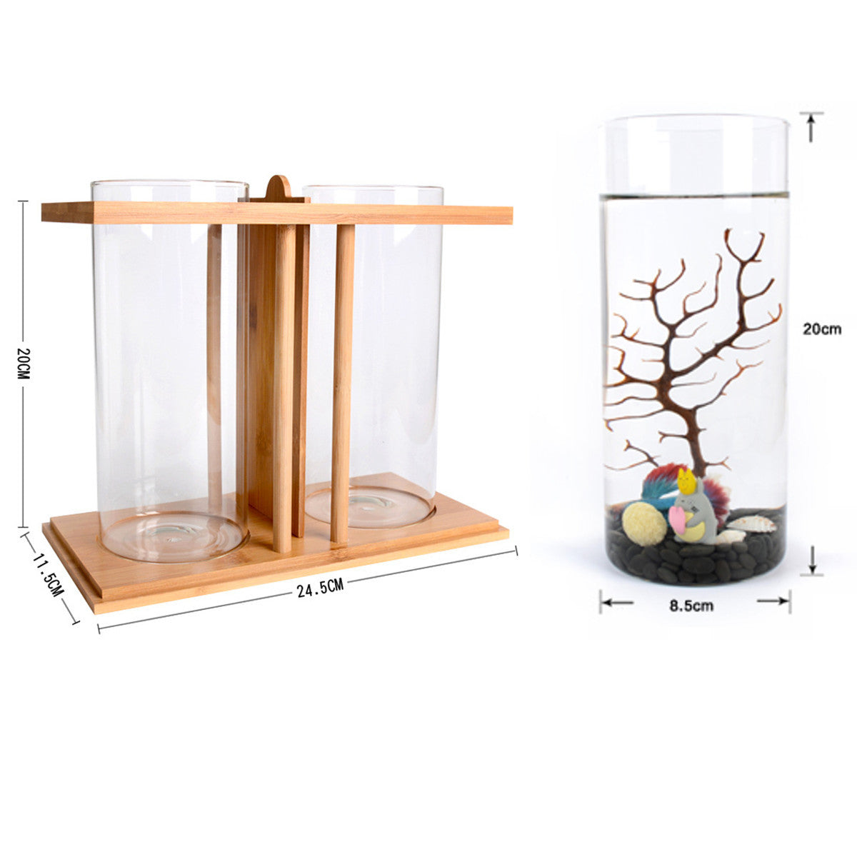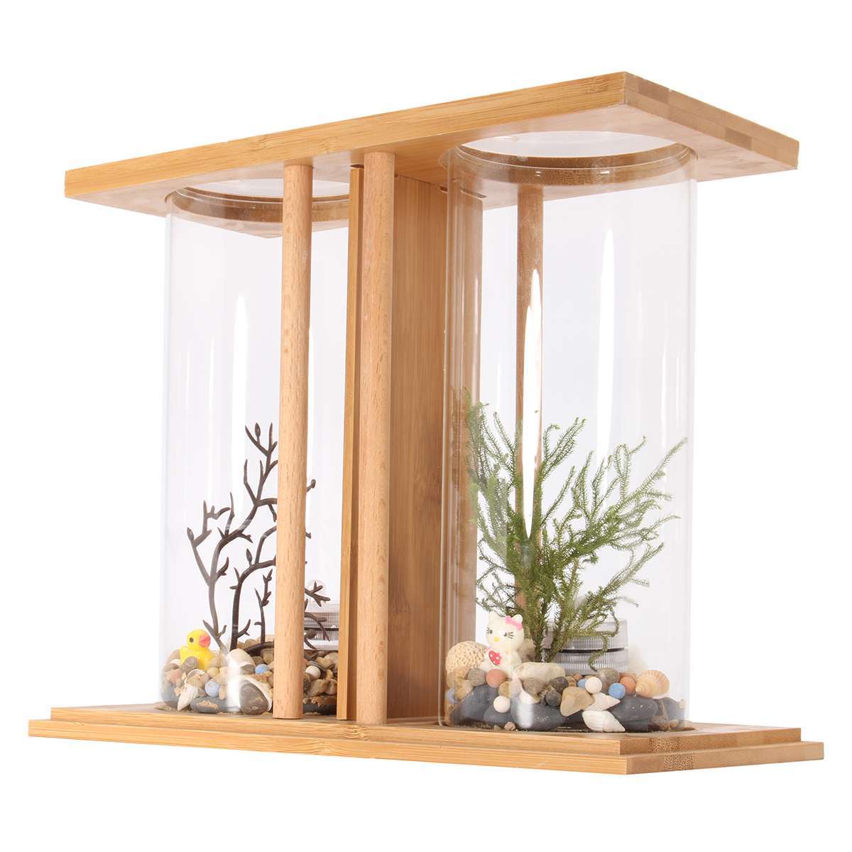 Mini Akwarium na Biurko z Bambusową Podstawą – LED
