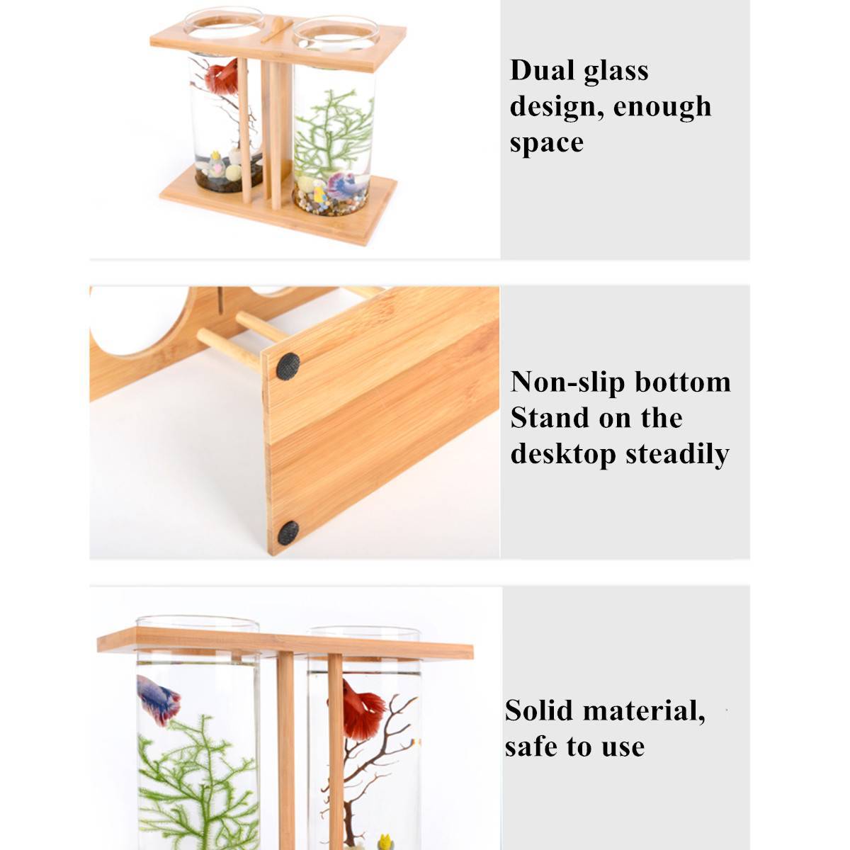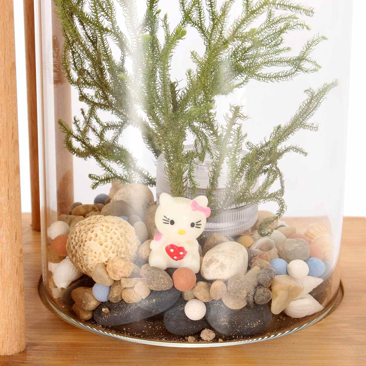 Mini akwarium wykonane z przezroczystego szkła i bambusowej podstawy może stanowić element dekoracyjny biurka, parapetu lub półki. Nadaje się do ekspozycji roślin wodnych, rybek lub elementów typu zen. Wbudowane oświetlenie LED .Nadaje się zarówno do przestrzeni biurowej, jak i domowej.