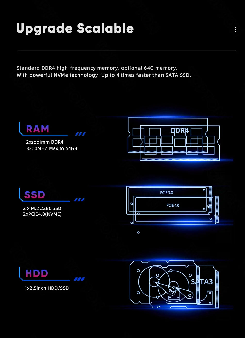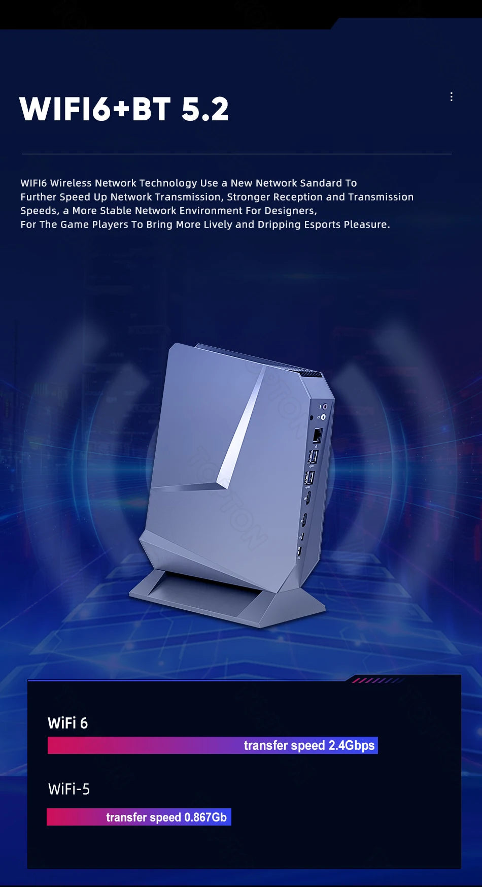 Mini komputer PC z podświetleniem RGB, do zastosowań domowych i multimedialnych – 64GB RAM, 2TB SSD