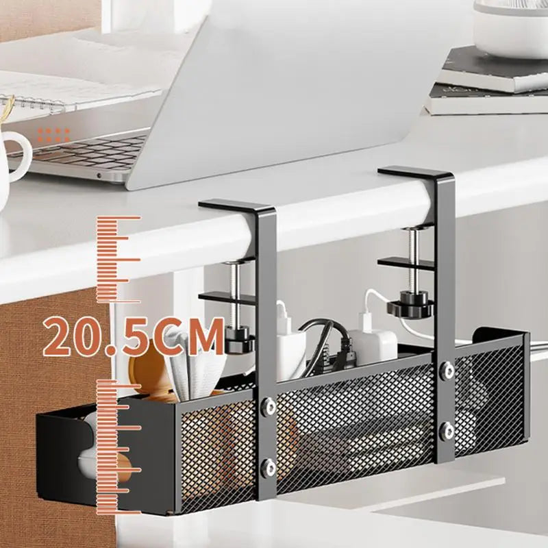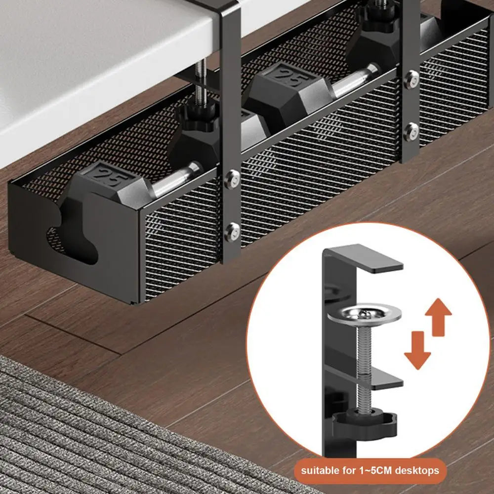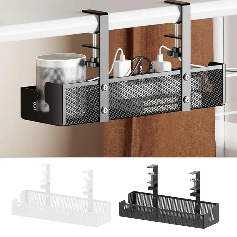 Organizer pod biurko z metalowej siatki montowany bez wiercenia pomaga uporządkować listwy zasilające i przewody. Mocowany do blatu lub biurka, pozwala zaoszczędzić miejsce pod stanowiskiem pracy. Siatkowa konstrukcja wspiera cyrkulację powietrza i umożliwia łatwe rozmieszczenie kabli. Pasuje do większości blatów w domowym biurze, pokoju ucznia czy w pracy.