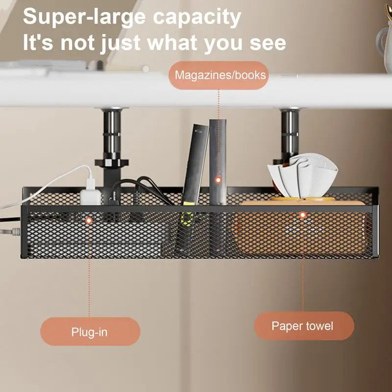Organizer na kable pod biurko – metalowa półka siatkowa bez wiercenia