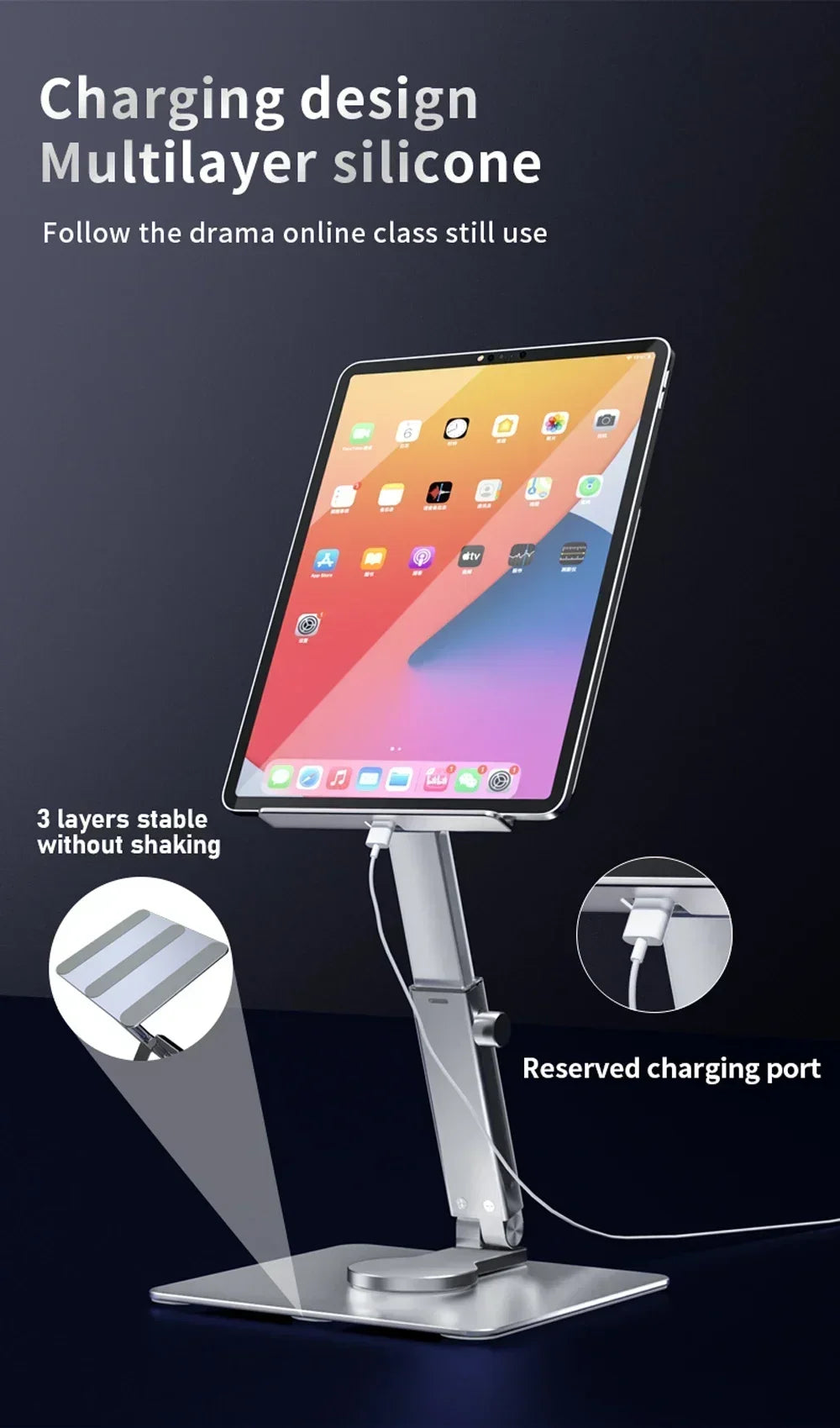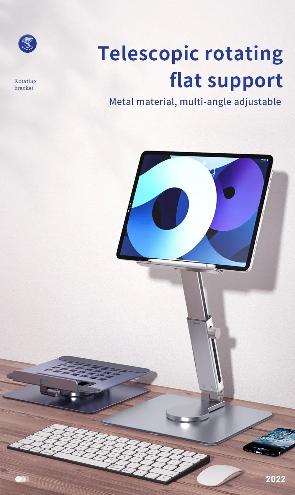 Aluminiowa podstawka pod tablet i laptop z regulacją wysokości i kąta obrotu 360°