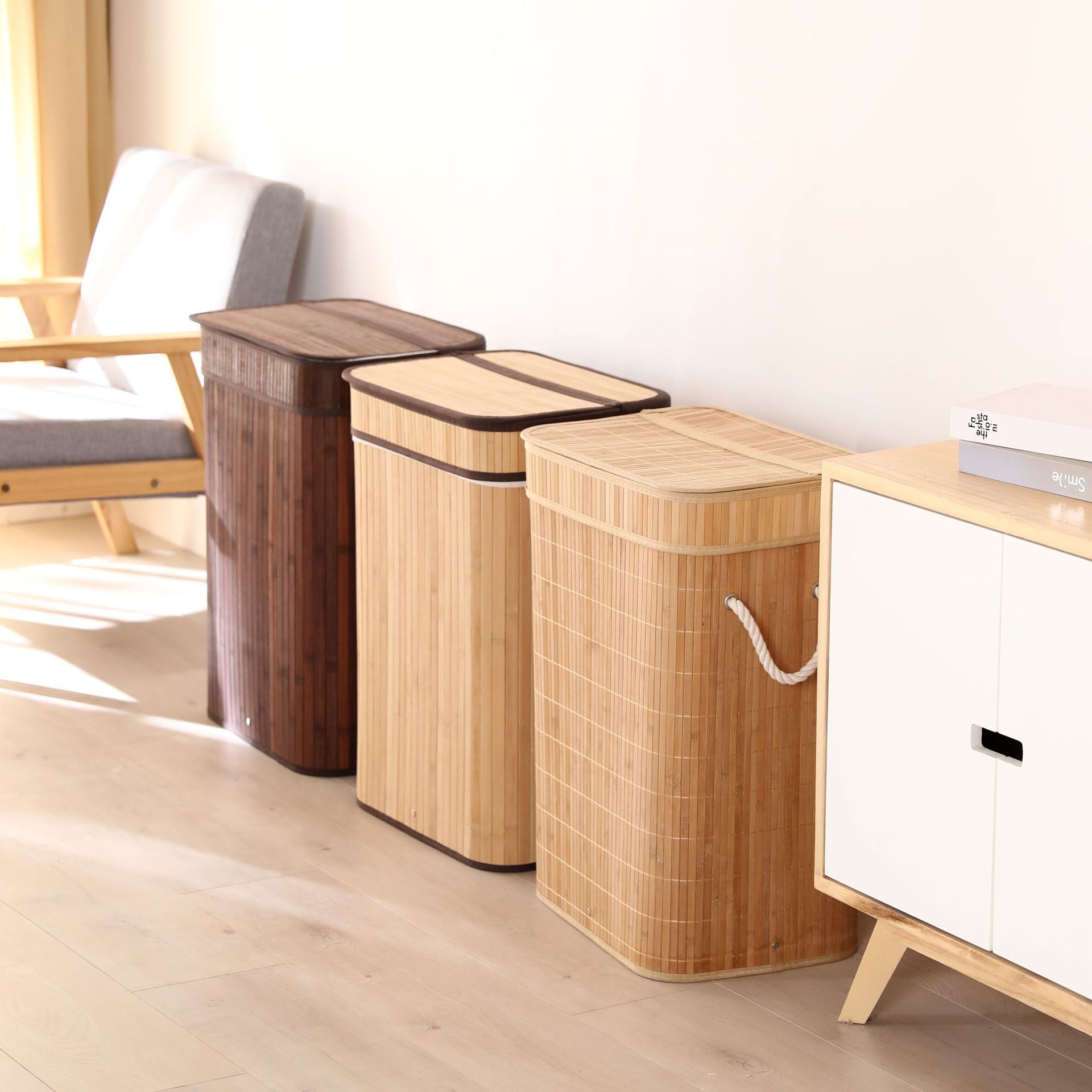 Składane bambusowe pudełko do przechowywania z bawełny i lnu