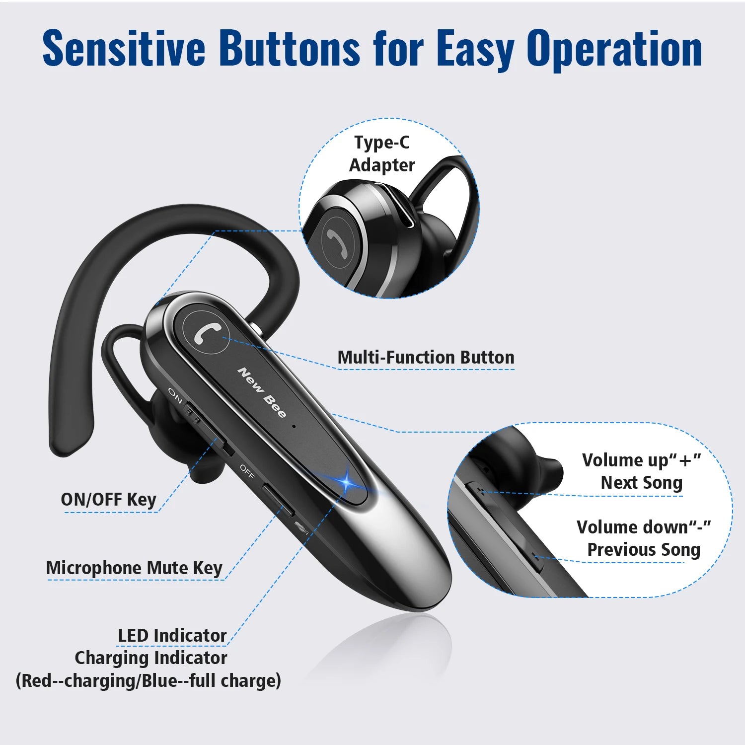 Bezprzewodowa słuchawka Bluetooth została stworzona z myślą o użytkownikach prowadzących rozmowy w pracy, w samochodzie lub w domu. Wyposażona w podwójny mikrofon z funkcją redukcji szumów oraz technologię Bluetooth 5.0, zapewnia dobrą jakość połączenia i czysty dźwięk.