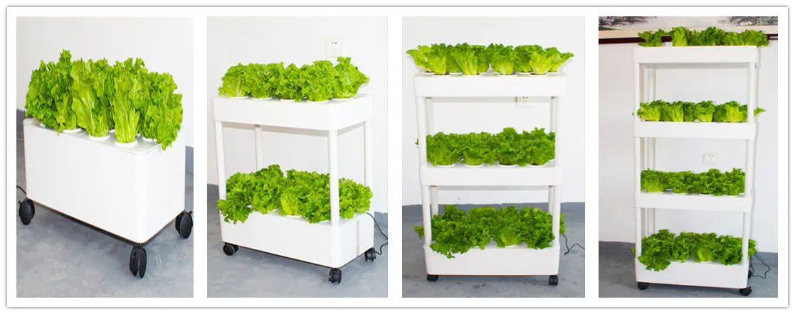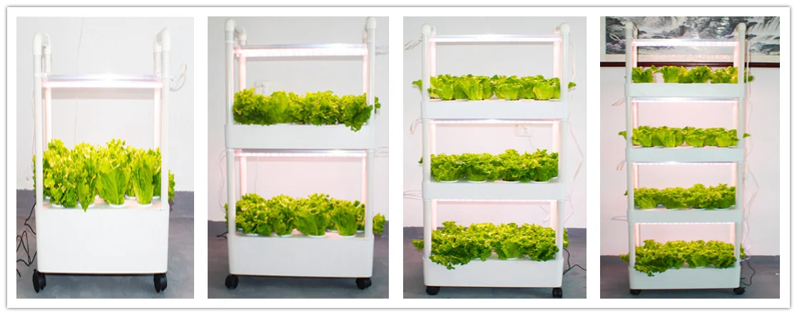 Zestaw do uprawy hydroponicznej z 4-poziomową konstrukcją i oświetleniem LED. Przeznaczony do użytku w przestrzeniach wewnętrznych – takich jak balkon, oranżeria czy pomieszczenia domowe. Konstrukcja umożliwia umieszczenie do 56 roślin w specjalnych otworach. Może być używany do uprawy roślin liściastych.