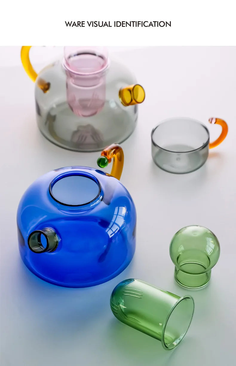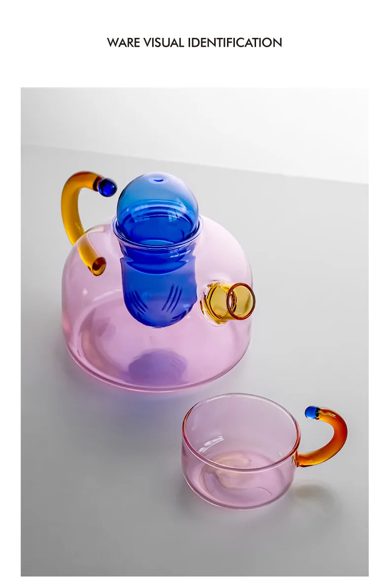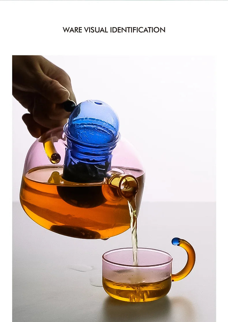 Zestaw do przygotowywania herbaty, składający się ze szklanego czajnika i dopasowanej filiżanki. Wbudowany separator ułatwia zaparzanie liści herbaty. Wykonany ze szkła odpornego na wysoką temperaturę, sprawdzi się zarówno w domu, jak i w biurze.