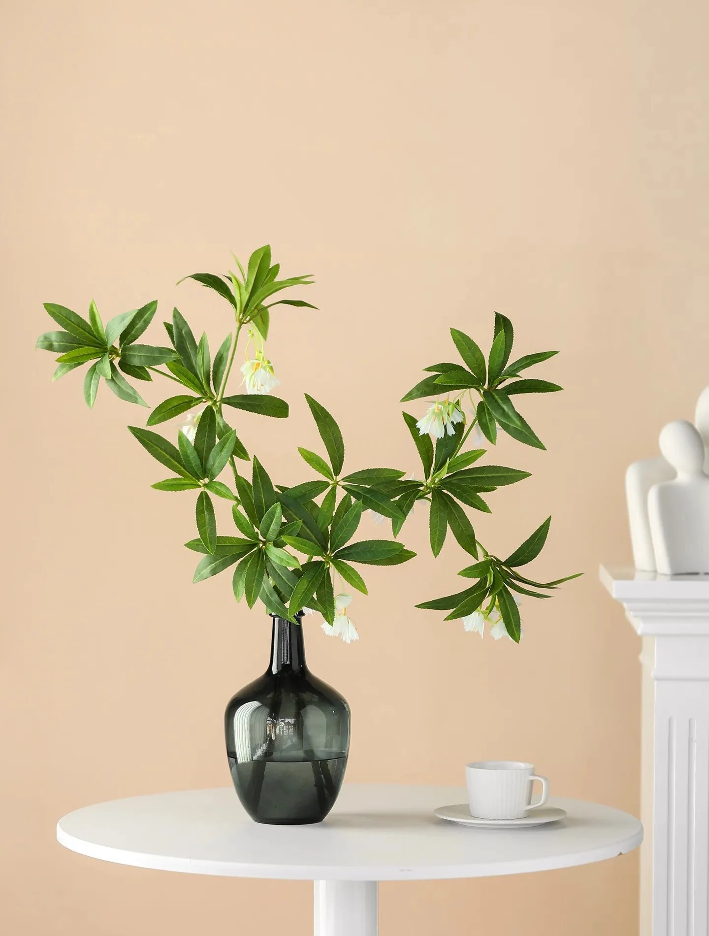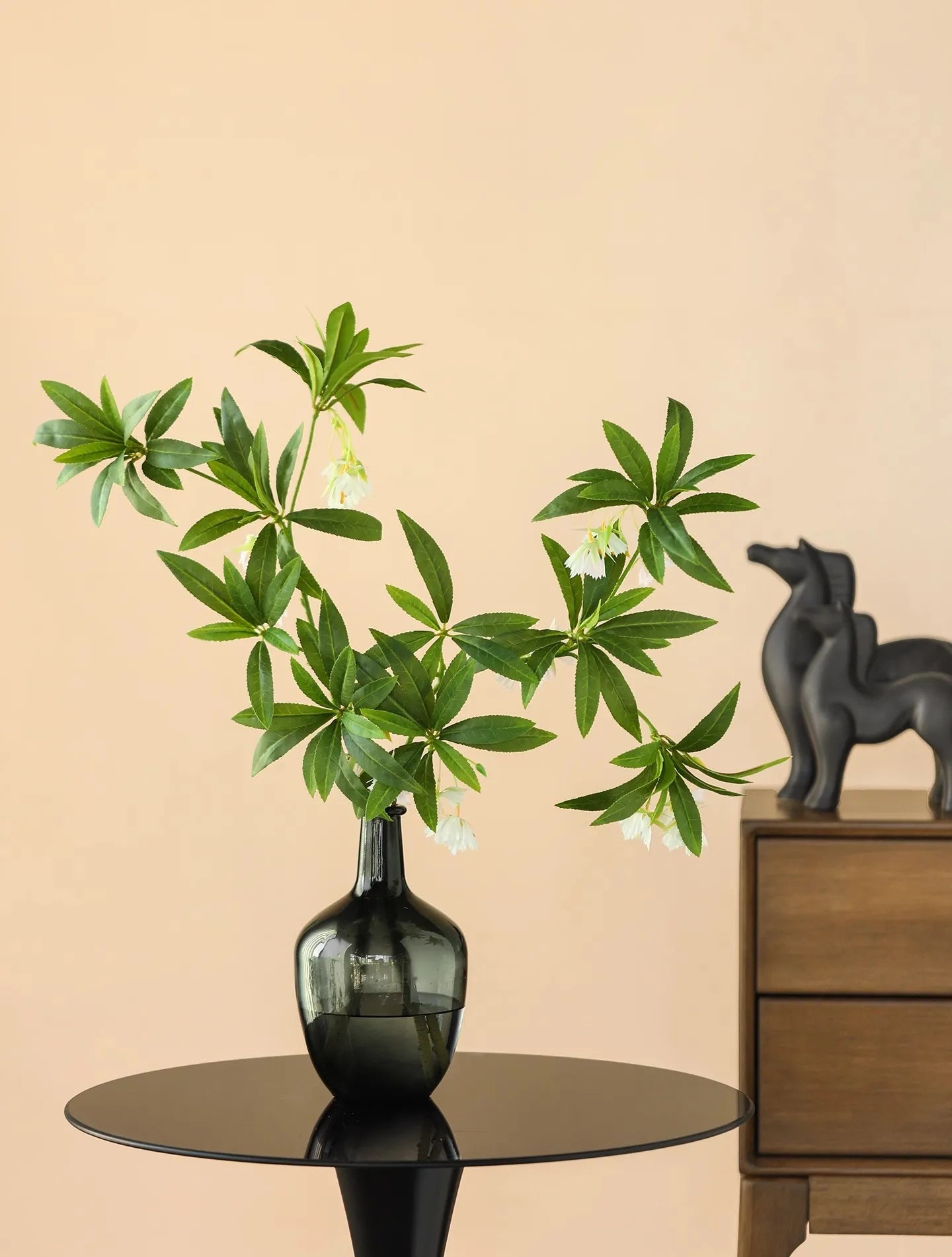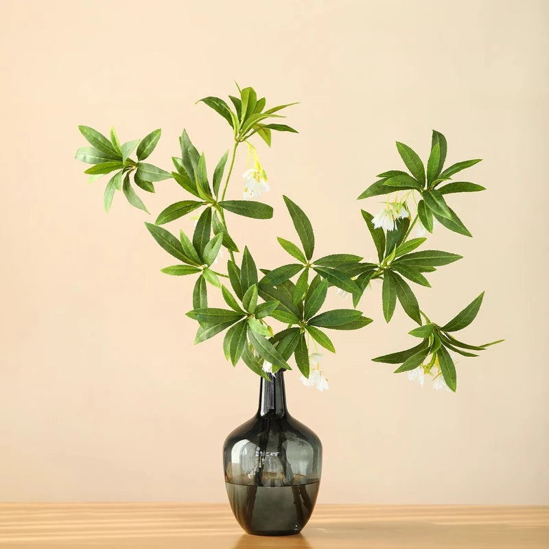 Roślina dekoracyjna typu bonsai w doniczce, przeznaczona do użytku wewnętrznego. Może zostać ustawiona na półce, biurku lub parapecie. Nie wymaga podlewania ani pielęgnacji. Wykonana z tworzywa sztucznego o zielonym zabarwieniu.
