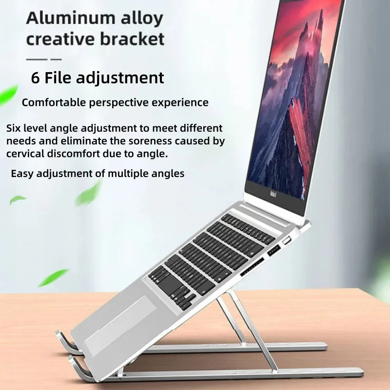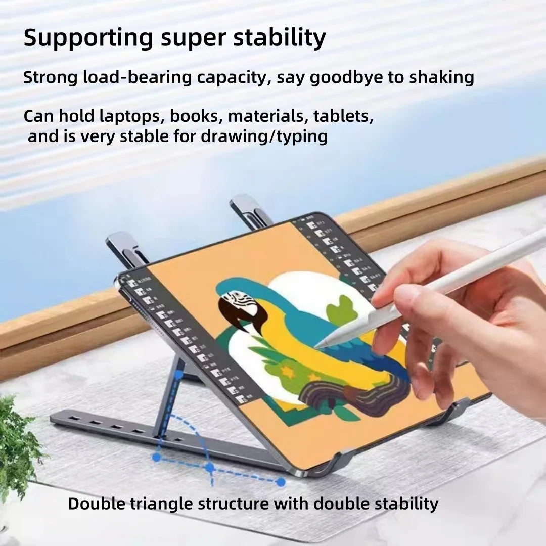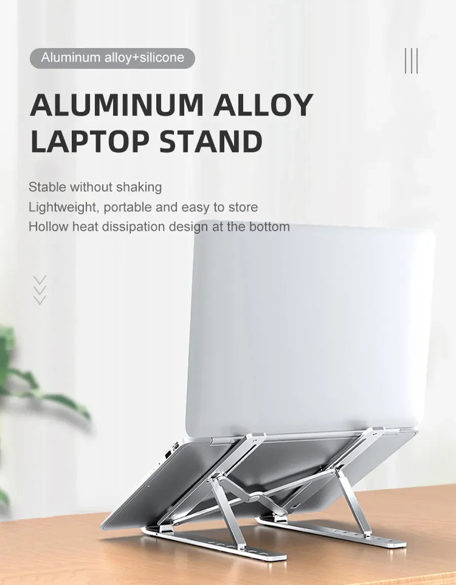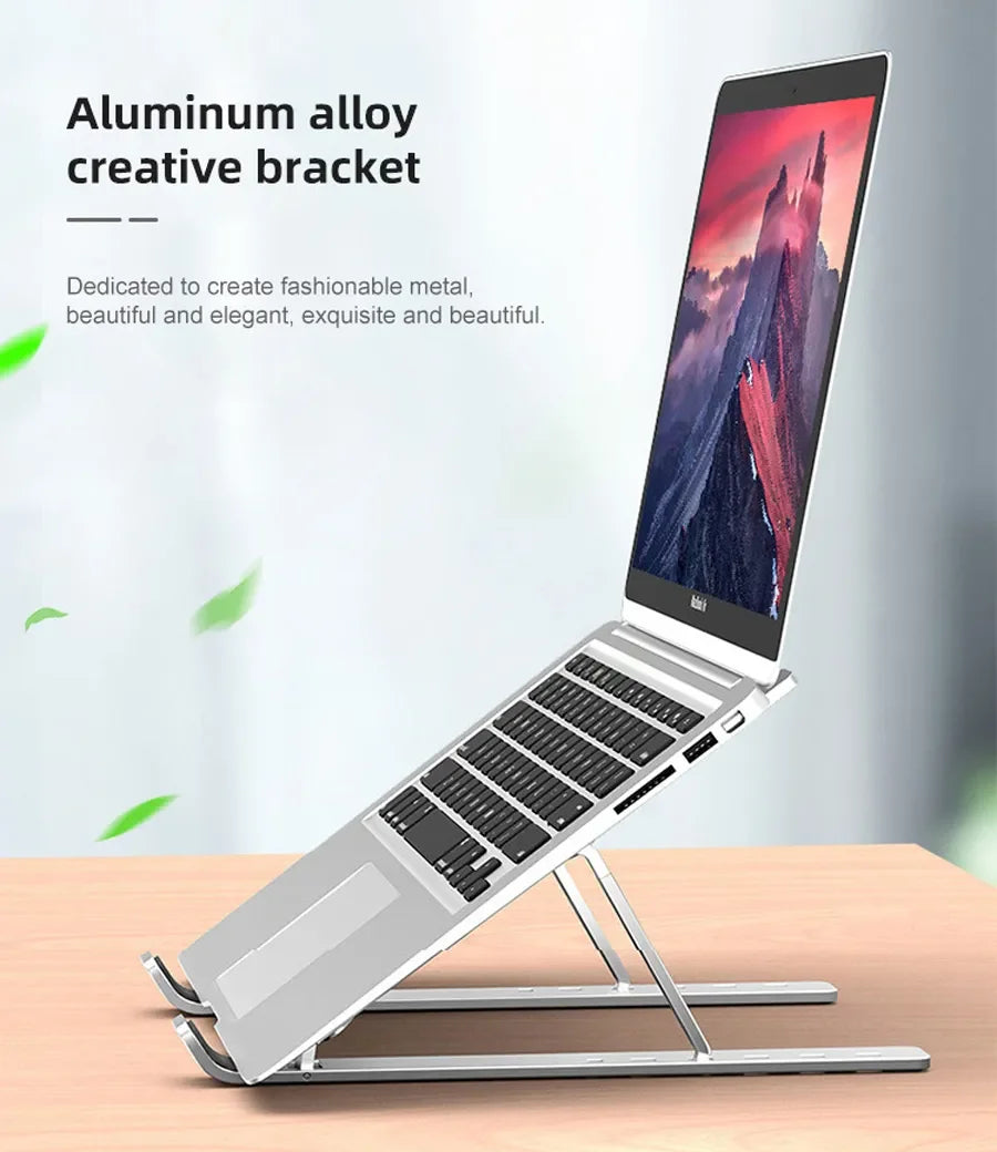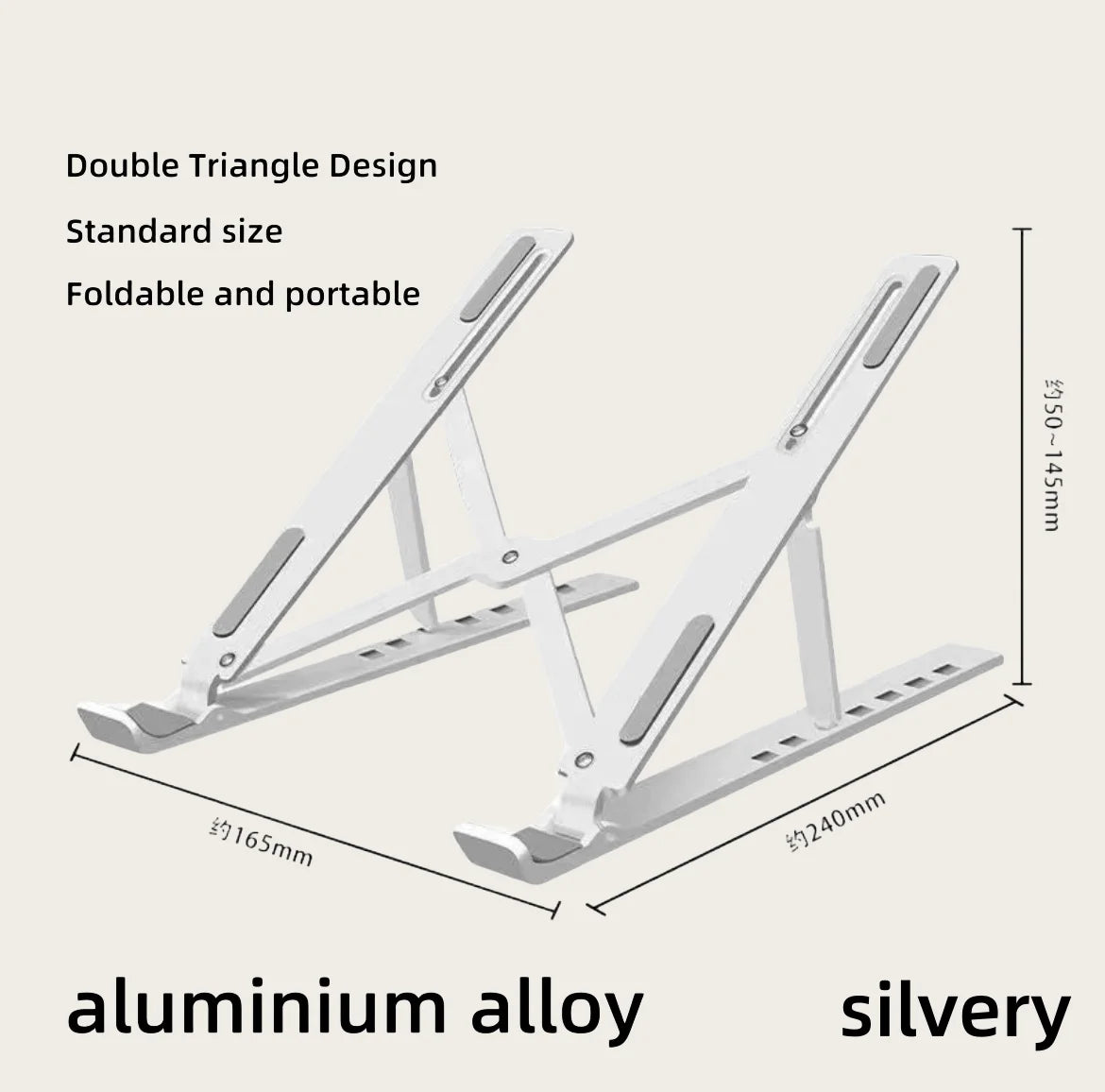 Uchwyt pod laptopa wykonany z aluminium, przeznaczony do użytku w domu, biurze lub w podróży
