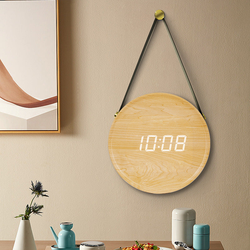 Prosty zegar ścienny LED z funkcją temperatury, daty oraz godziny w systemie 24-godzinnym. Idealny do biura, salonu lub sypialni. Czytelny ekran LED i nowoczesna forma sprawiają, że pasuje do różnych wnętrz.