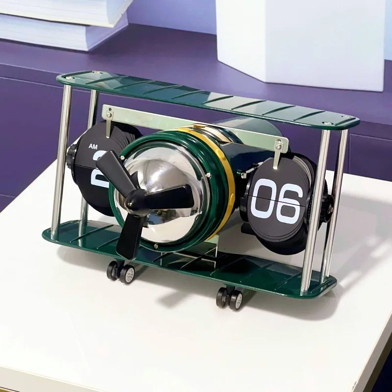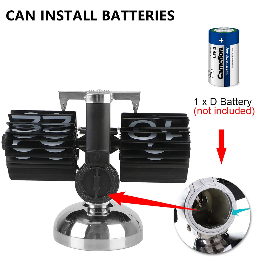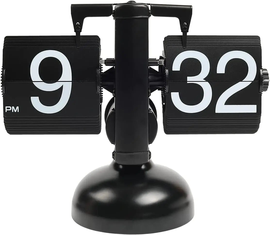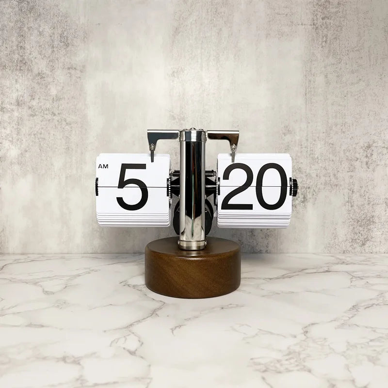 Zegar biurkowy typu flip z mechanizmem klapkowym łączy styl retro z precyzją. Mechanizm zmieniający cyfry sprawia, że produkt staje się dekoracyjnym elementem wnętrza w stylu vintage, loft lub minimalistycznym. Cichy mechanizm kwarcowy.