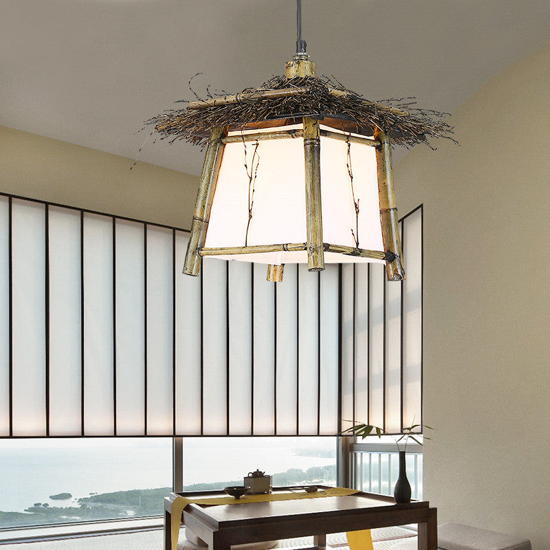Żyrandol z Bambusa i Rattanu-Styl Japoński/Eco Loft